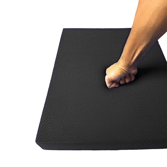 • Zwarte balansmat voor fysiotherapie en enkelrevalidatie, oefenmateriaal op witte achtergrond
