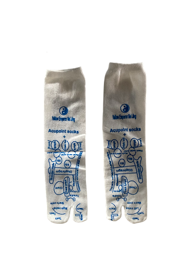 - Check de acupressuurkaart op de sokken en begin met het masseren van de aangegeven drukpunten.